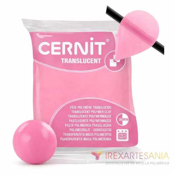 Arcilla polimérica Cernit Translucent Cuarzo Rosa 57 g ideal para crear piezas translúcidas, joyería artesanal y efectos de color luminoso.