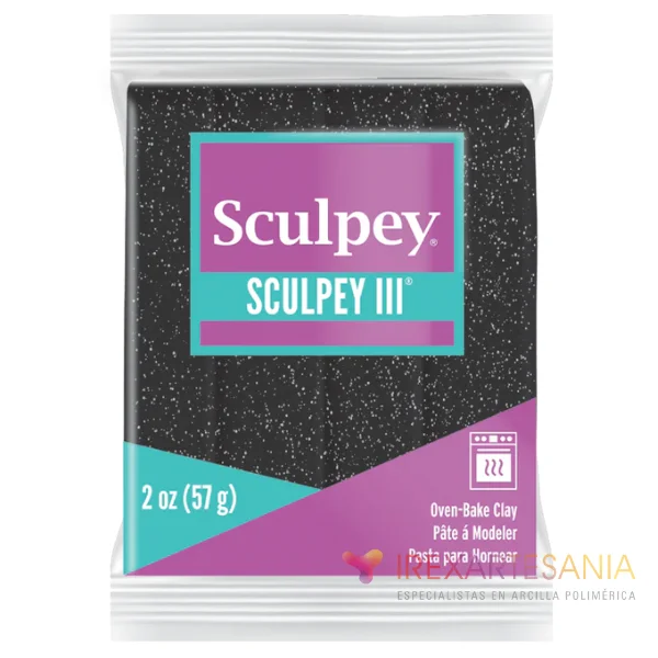 Sculpey III Negro Brillante es una arcilla polimérica suave, ideal para principiantes,niños y artesanos